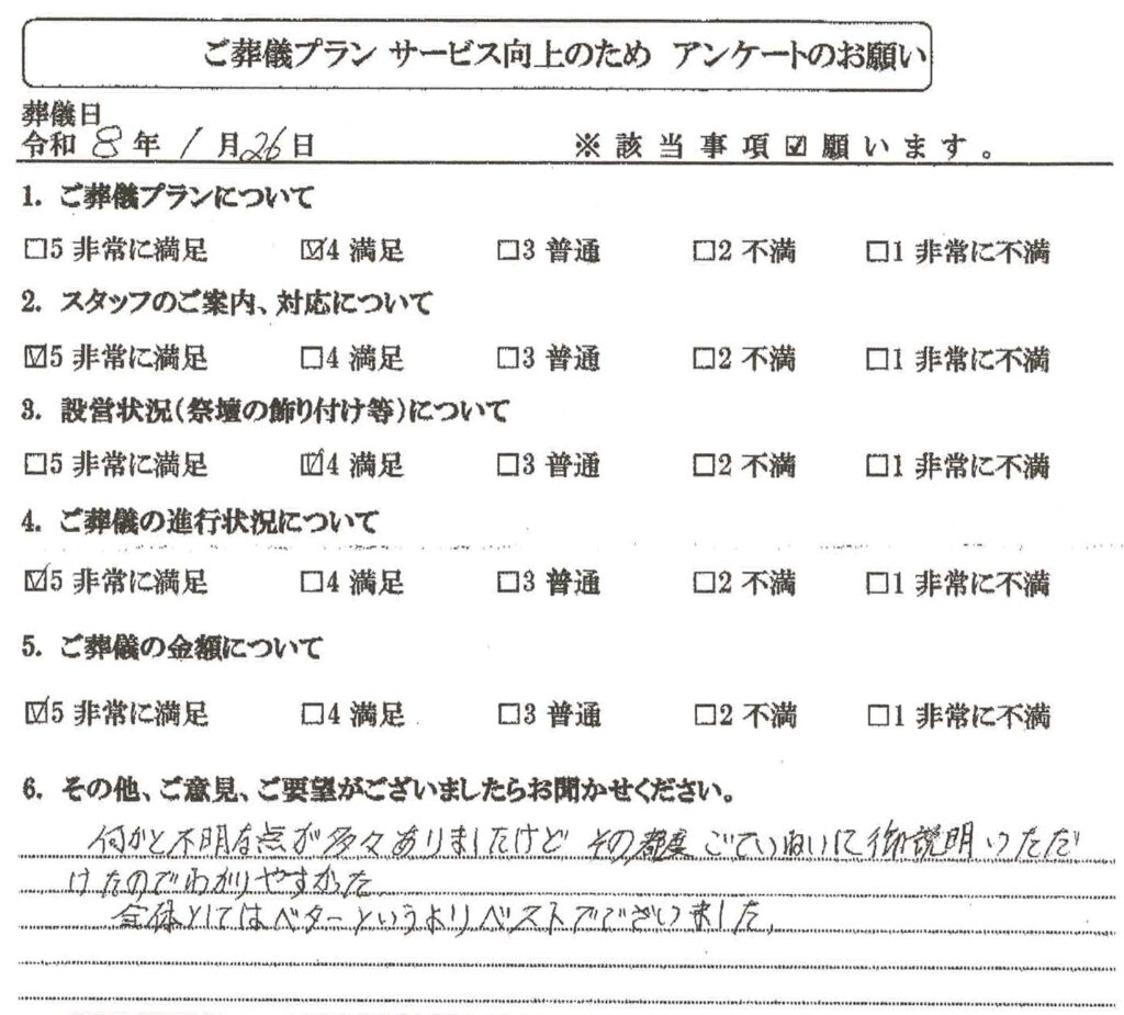 | 4.ご葬儀の進行状況について | ★★★★★ |